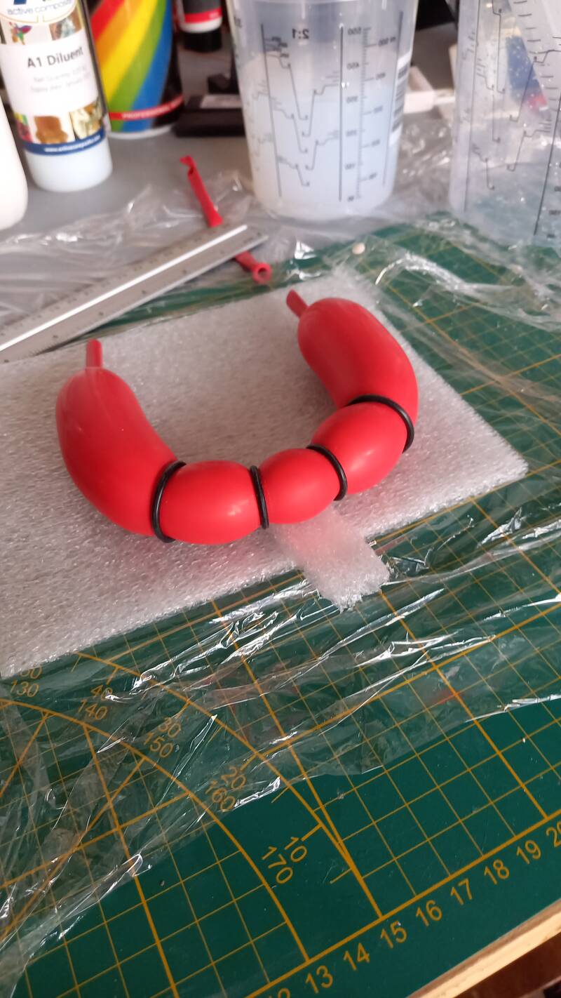 An array of molds is ready to be filled with resin. It’s an amazing process to create, develop, and refine the production part